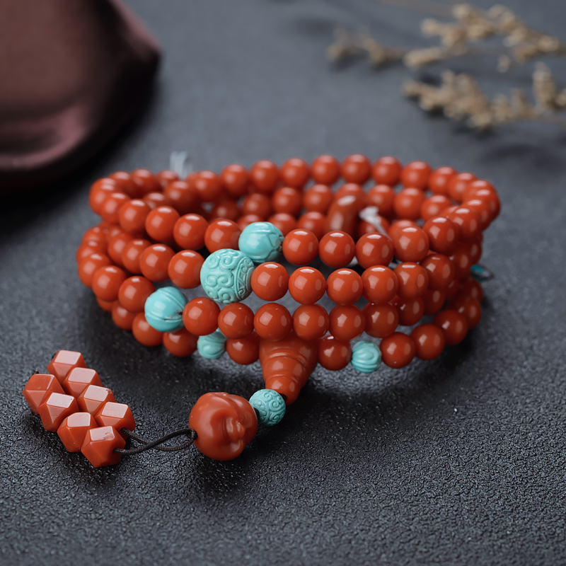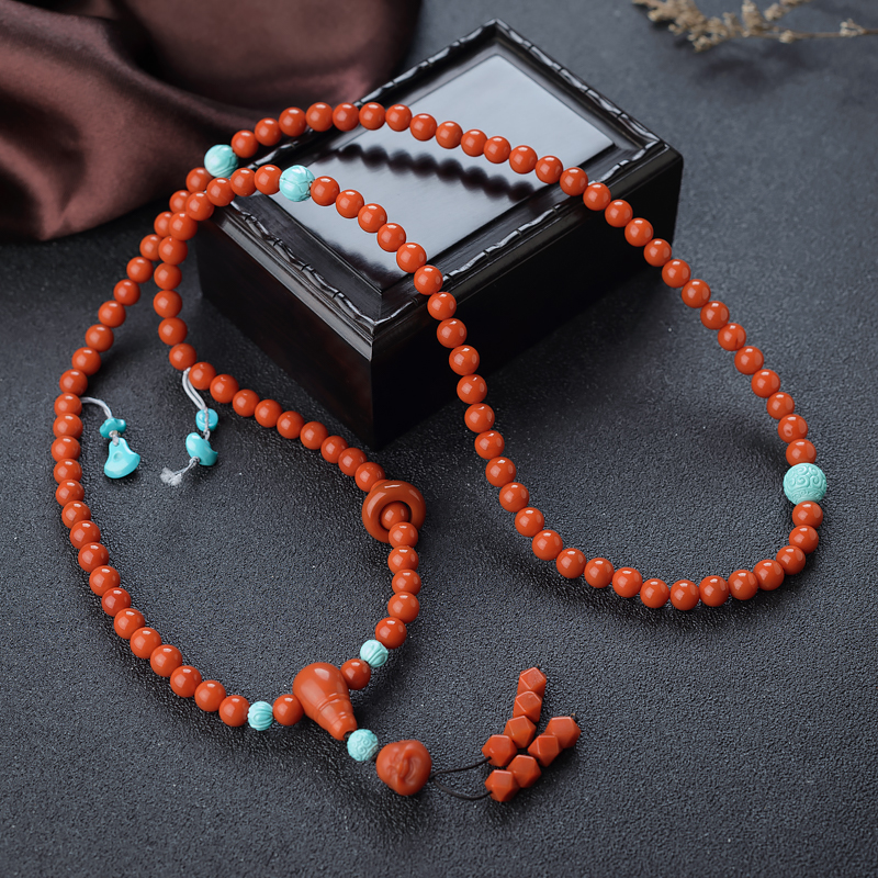 [尺  寸] 珠径6mm,全长69cm,南红珠数108颗