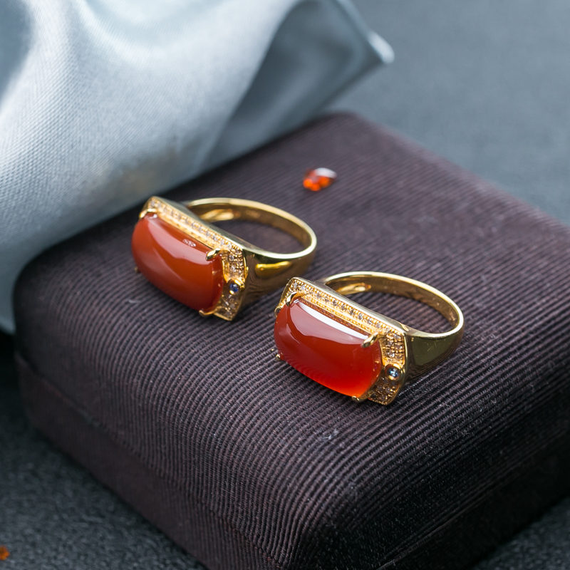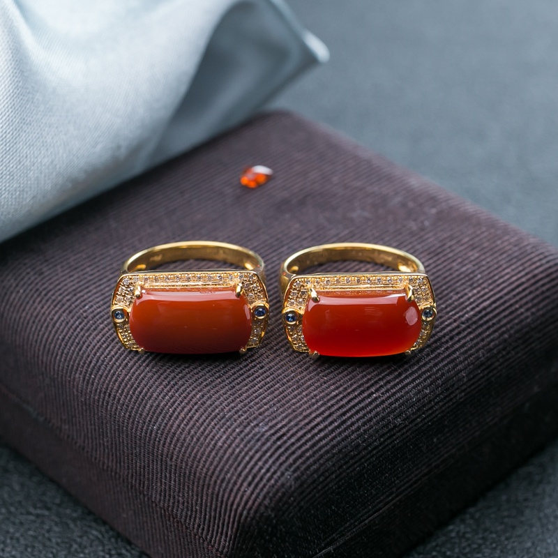 • [名  称] 18K玫瑰红南红戒指(两件)
