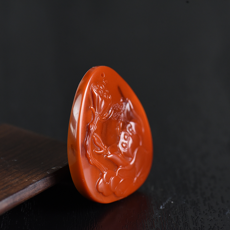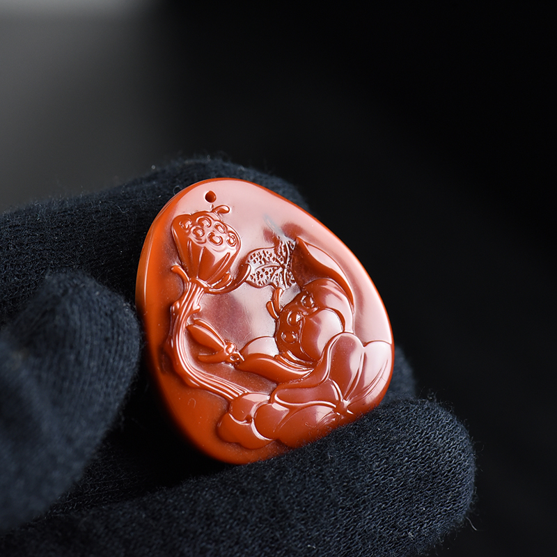 • [名  称] 柿子红南红荷塘清趣吊坠