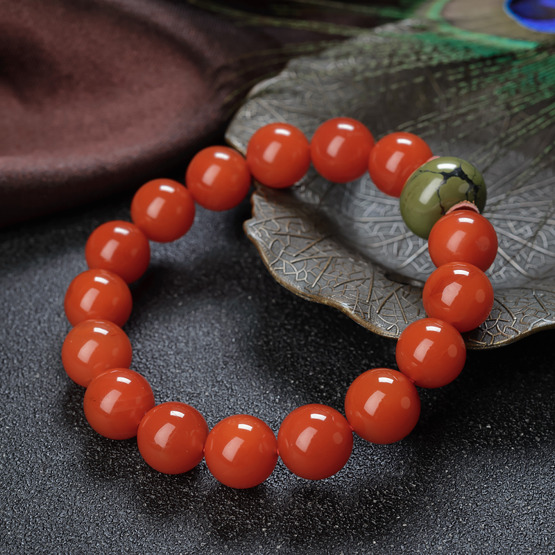 南红珠径11mm,绿松石珠径14.8mm厚9.9mm,