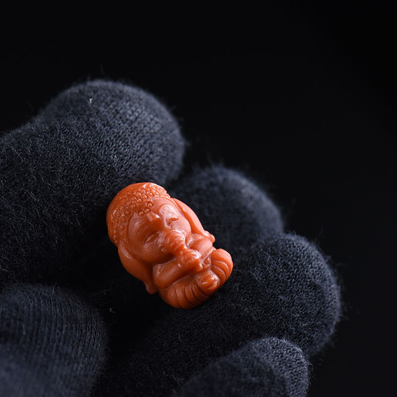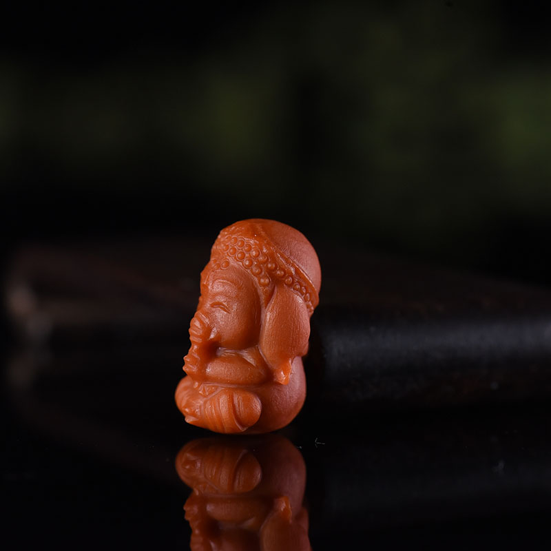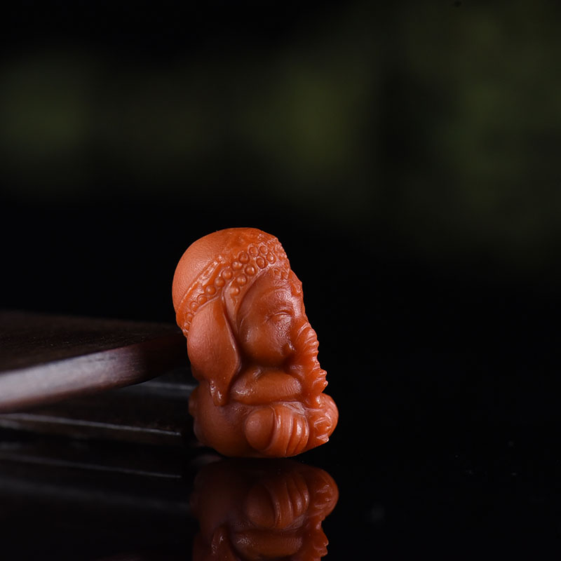 • 柿子红南红象神吊坠