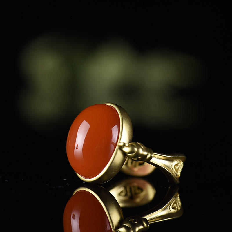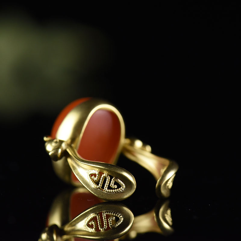 • 18K樱桃红南红凤凰戒指