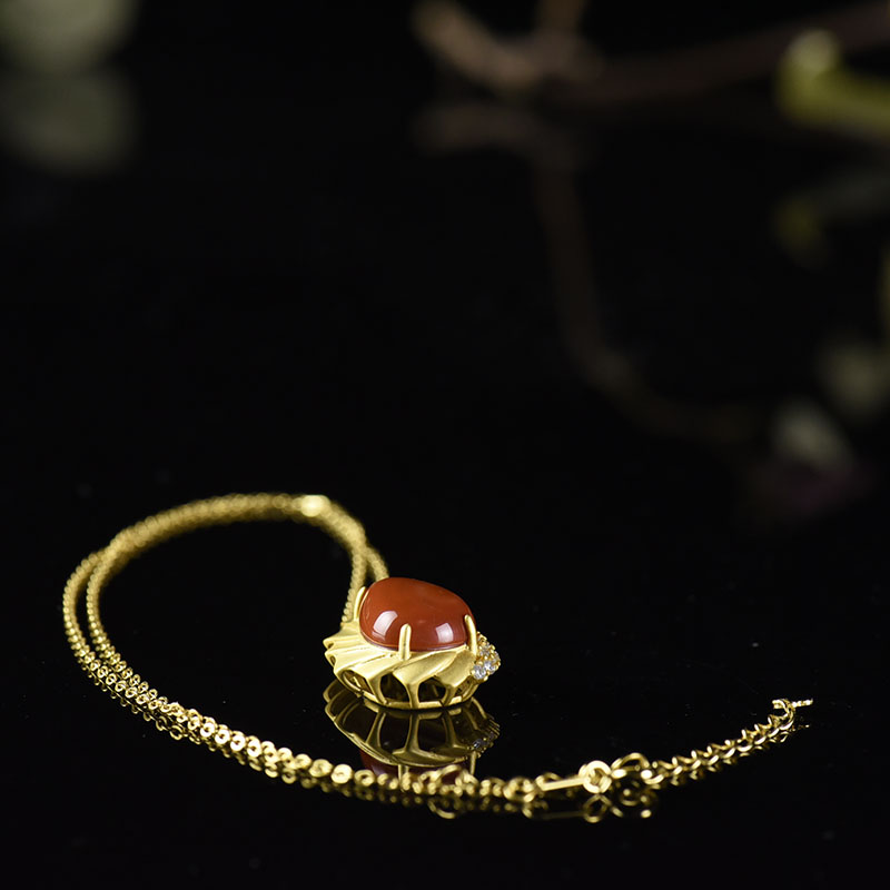 • 银镶柿子红南红水滴吊坠
