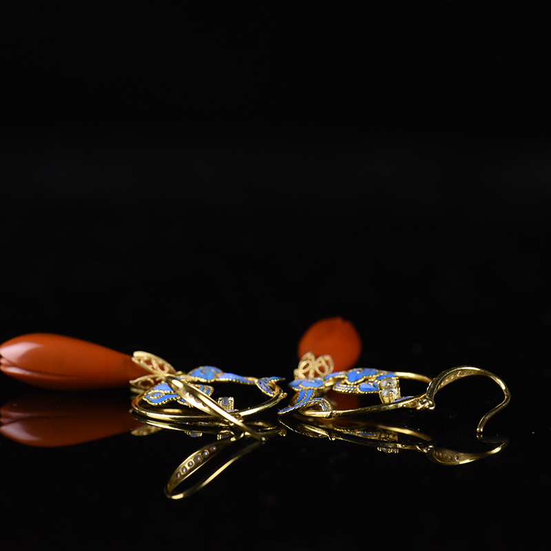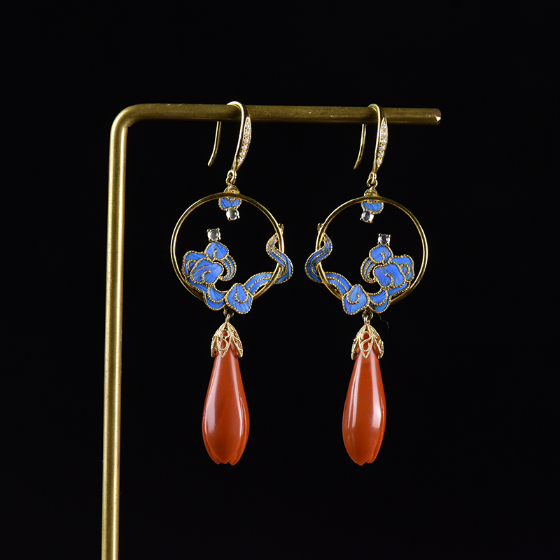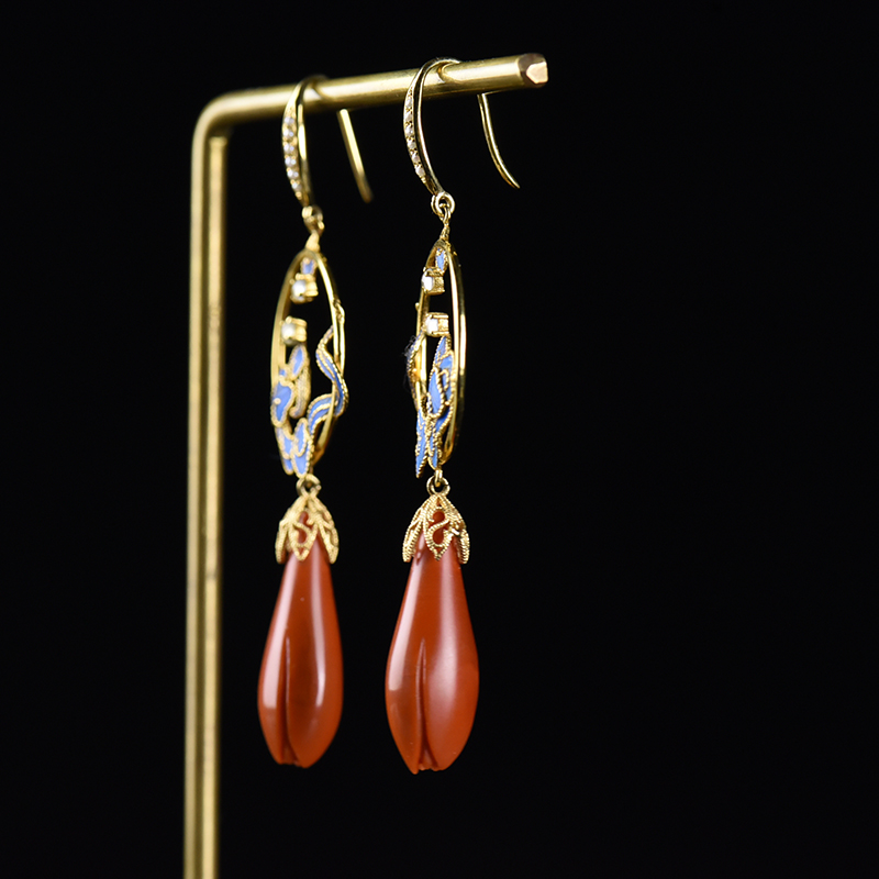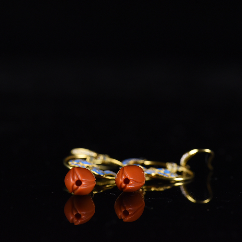 • [名  称] 18K柿子红南红玉兰花耳坠