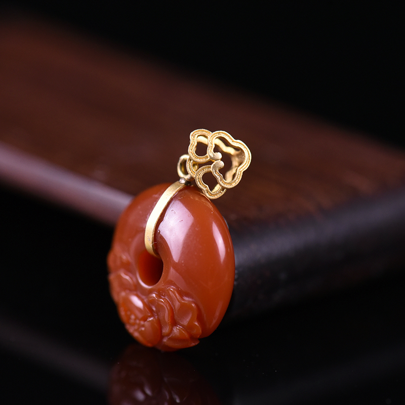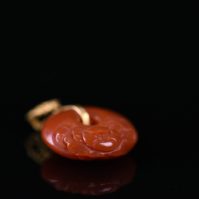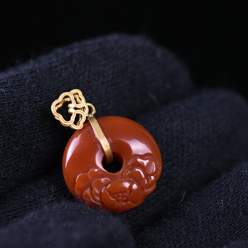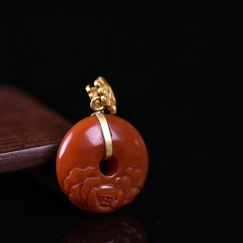 • [名  称] 18K柿子红南红花开富贵平安扣吊坠