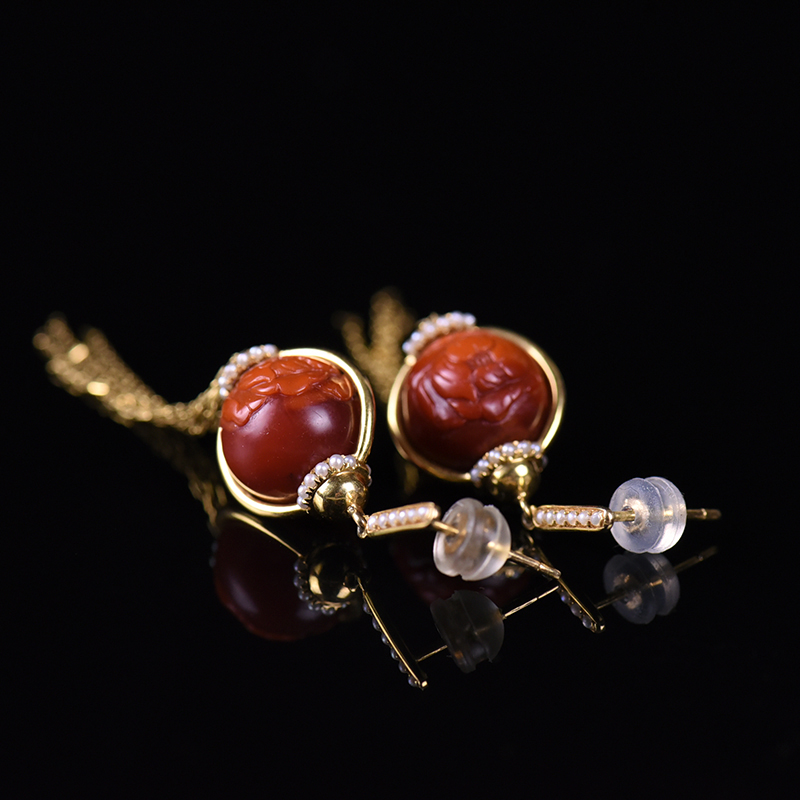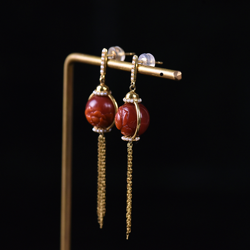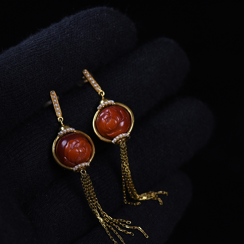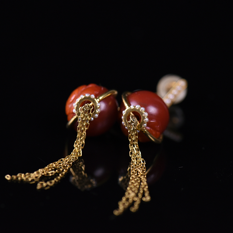 • [名  称] 18K柿子红南红花开富贵耳坠