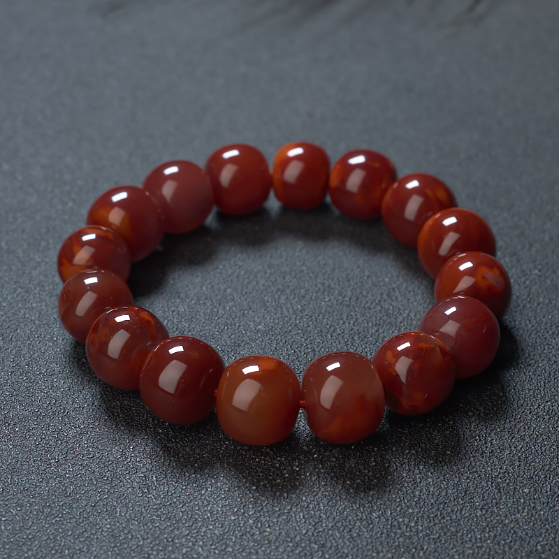 • 玫瑰红南红桶珠单圈手串