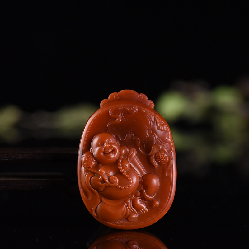 • 柿子红南红弥勒佛吊坠