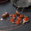 • 银镶樱桃红南红戒指/吊坠/耳钉/手链套装