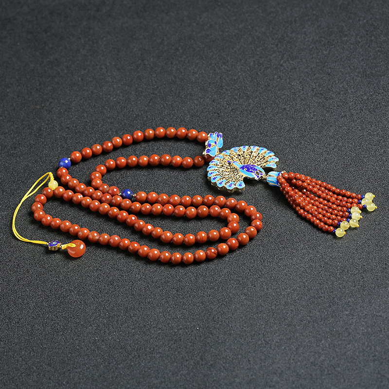 • [名  称] 玫瑰红南红孔雀毛衣链