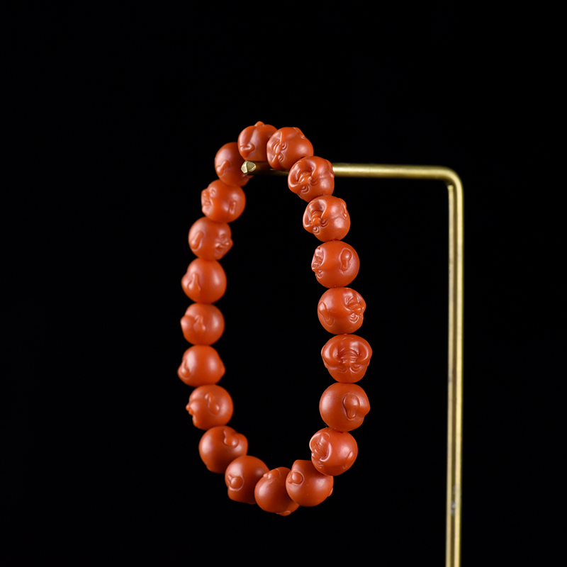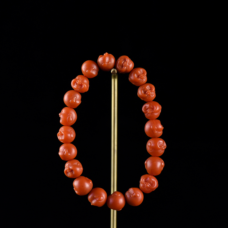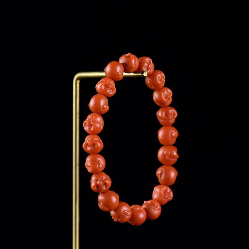 • [名  称] 柿子红南红弥勒佛单圈手串