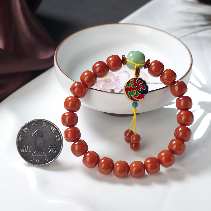 [尺  寸] 单颗珠径9.1mm左右厚8.1mm左右,全长18cm左右,珠数21颗