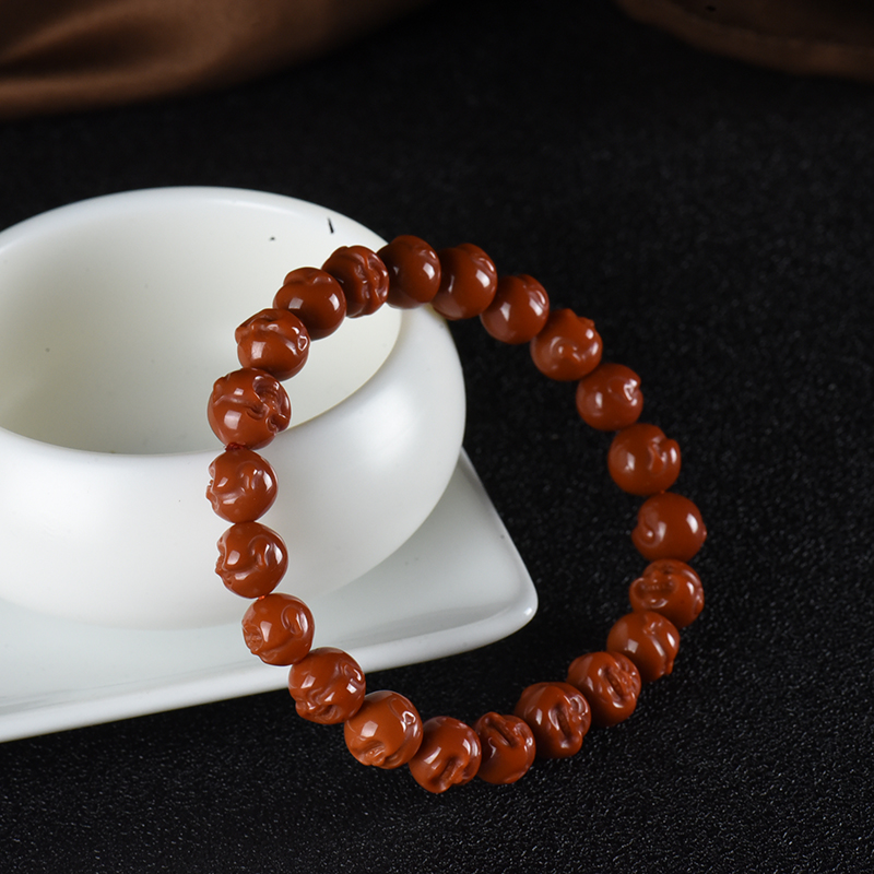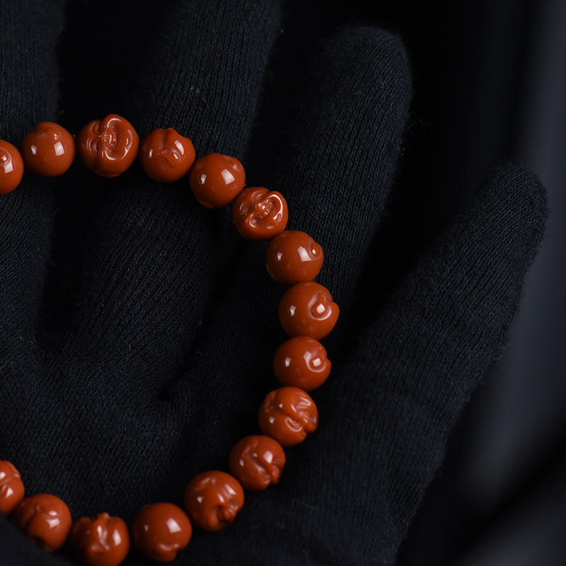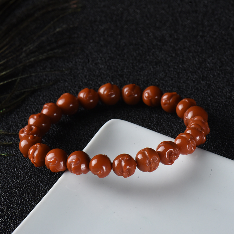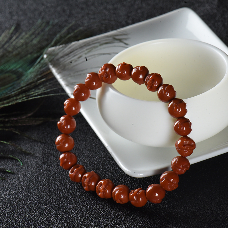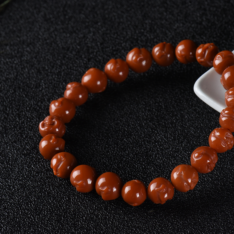 • [名  称] 柿子红南红弥勒佛单圈手串
