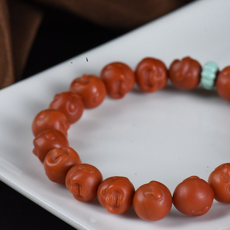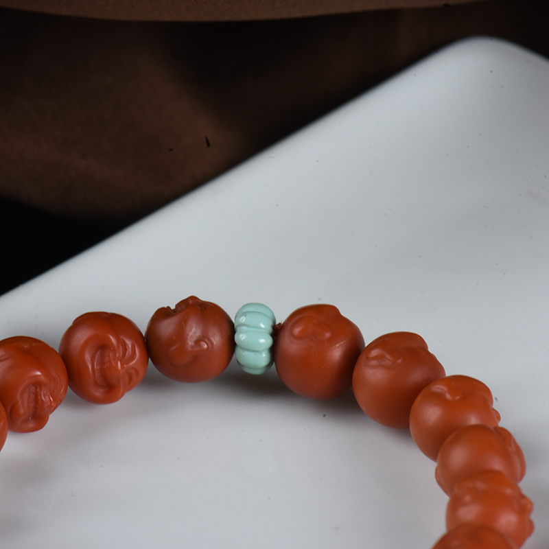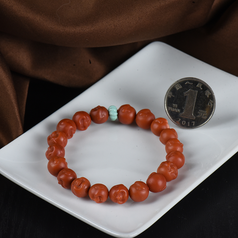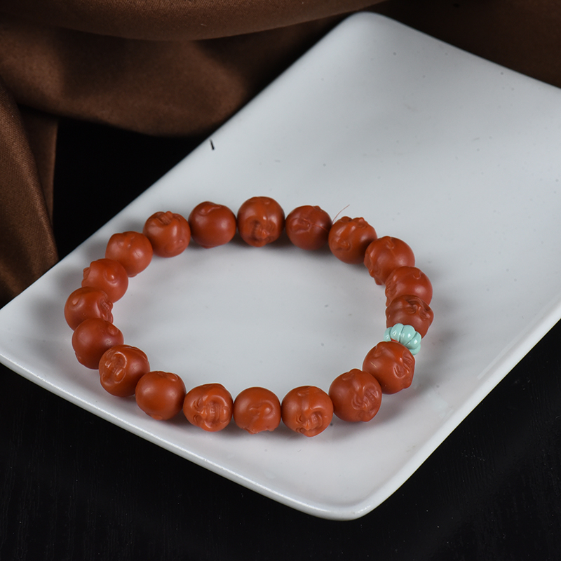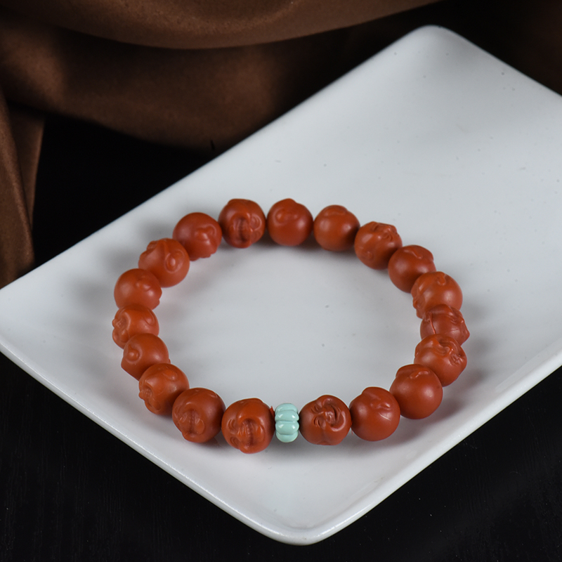 • 柿子红南红弥勒佛单圈手串