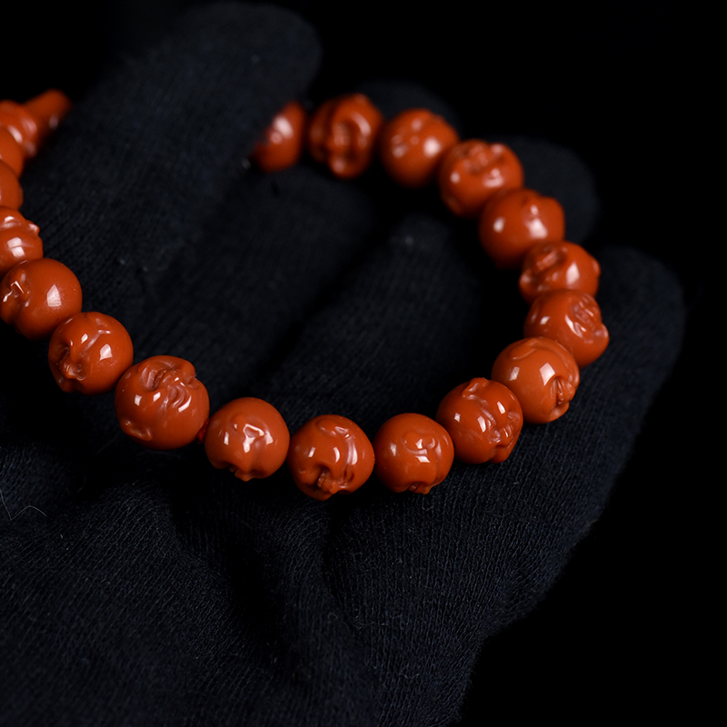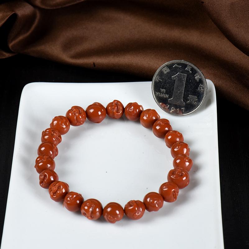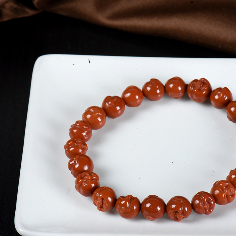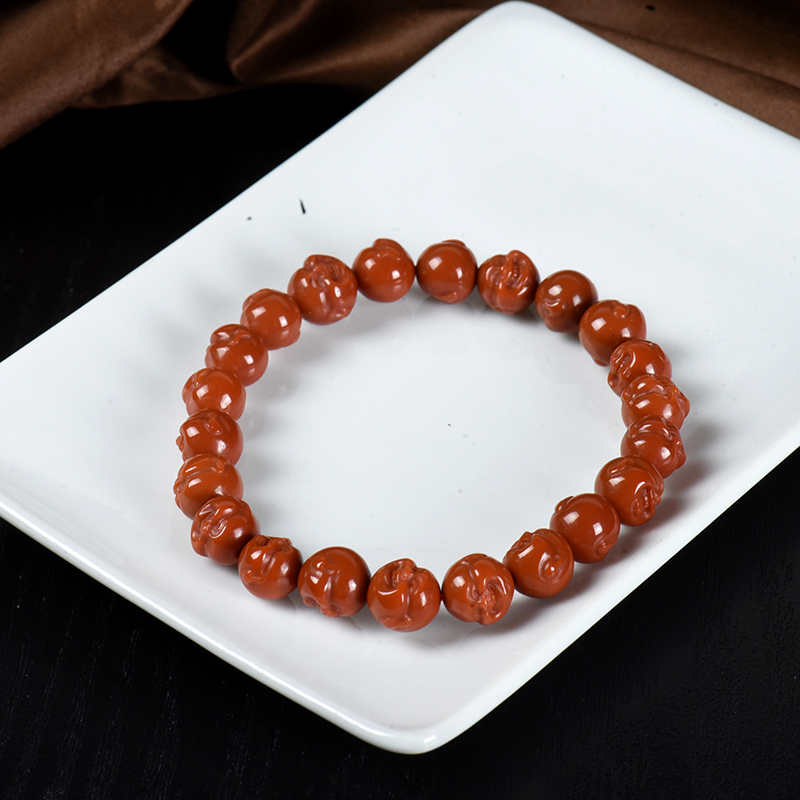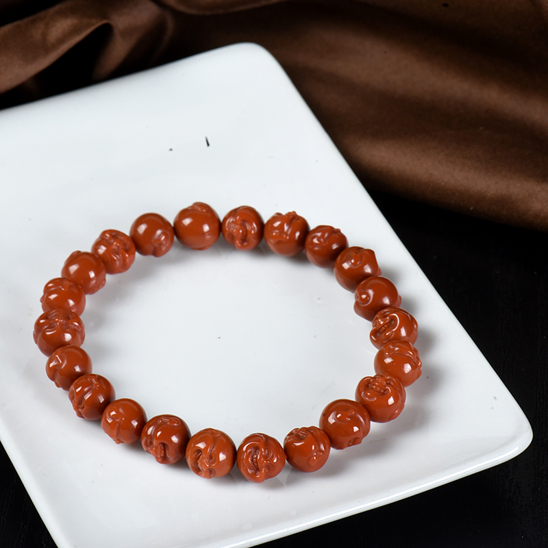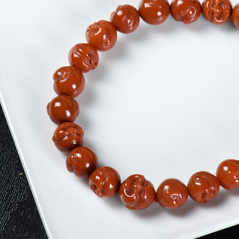 • 柿子红南红弥勒佛单圈手串