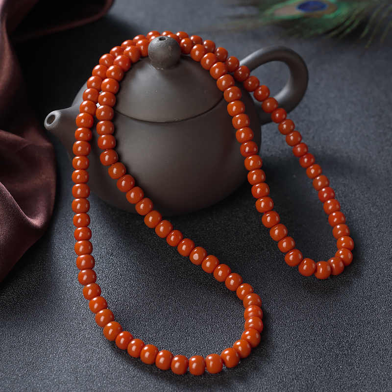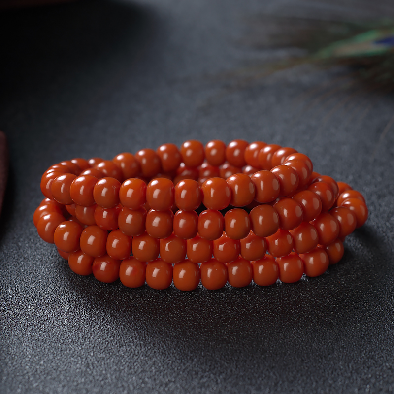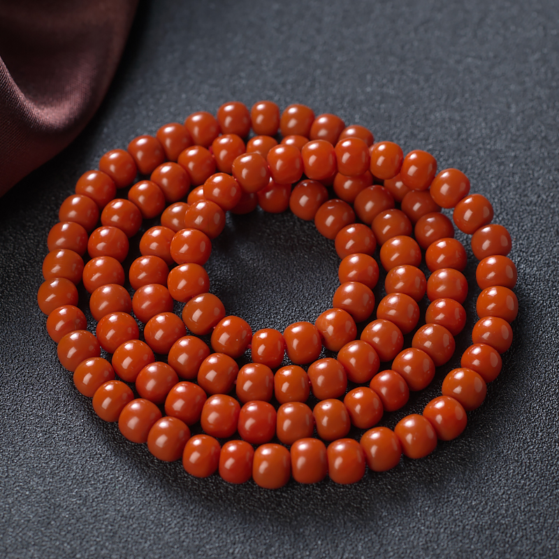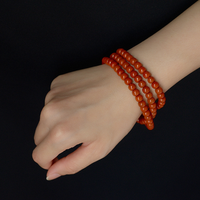 • 柿子红南红桶珠多圈手串