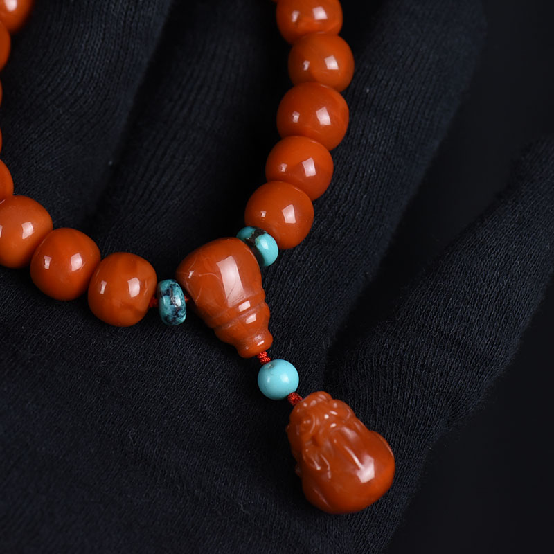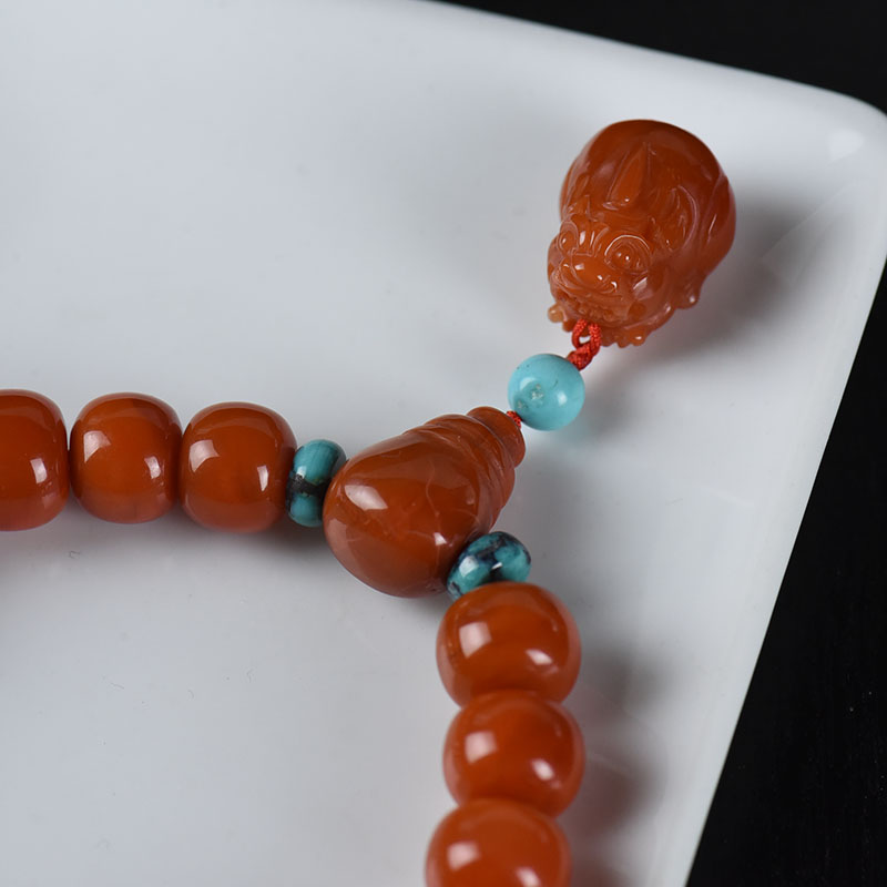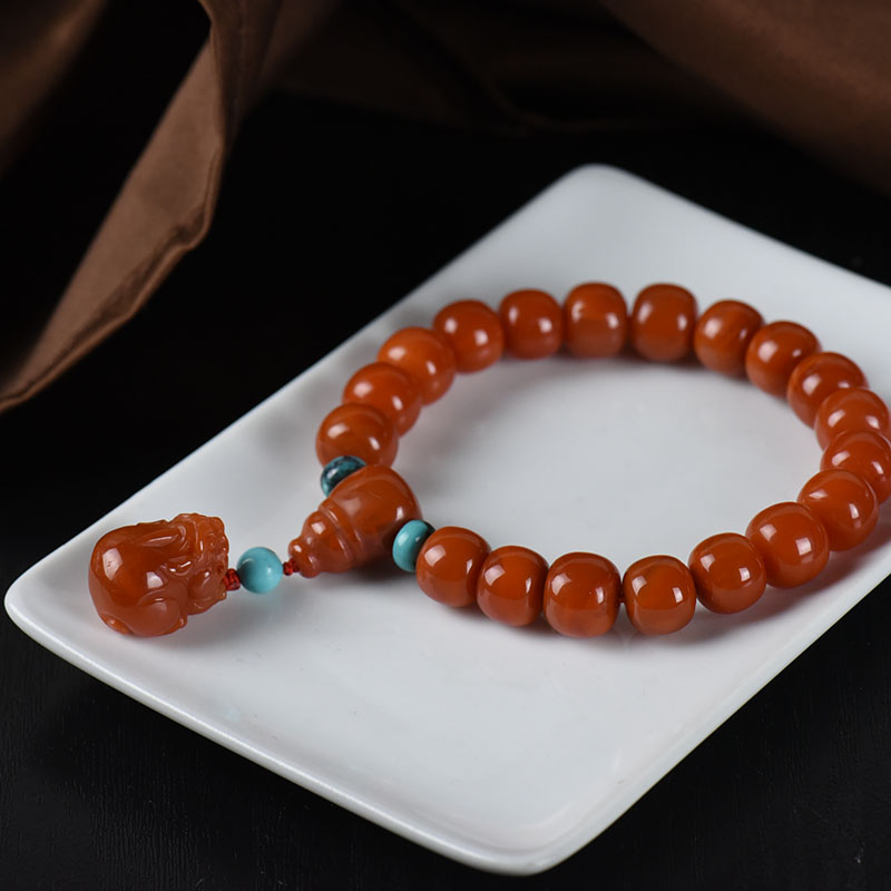• [名  称] 柿子红南红貔貅老形珠单圈手串