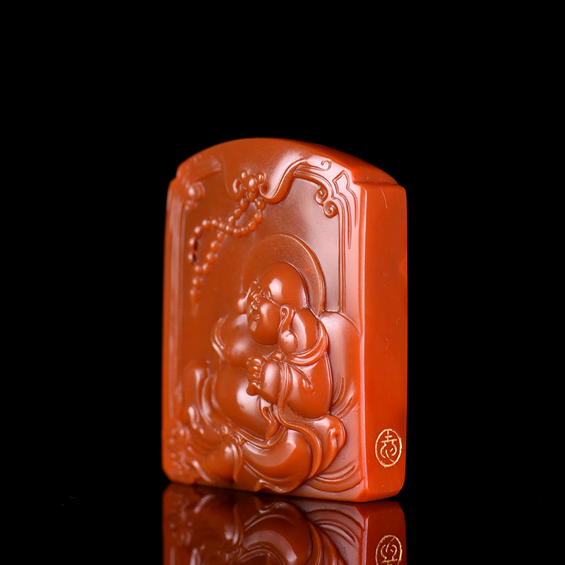 • 柿子红南红弥勒佛吊坠