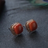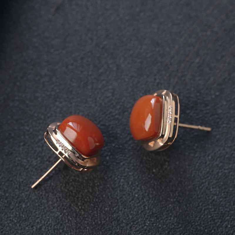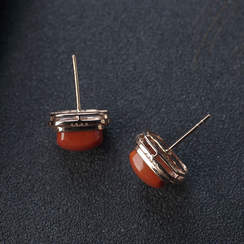 • 18K柿子红南红方形耳钉