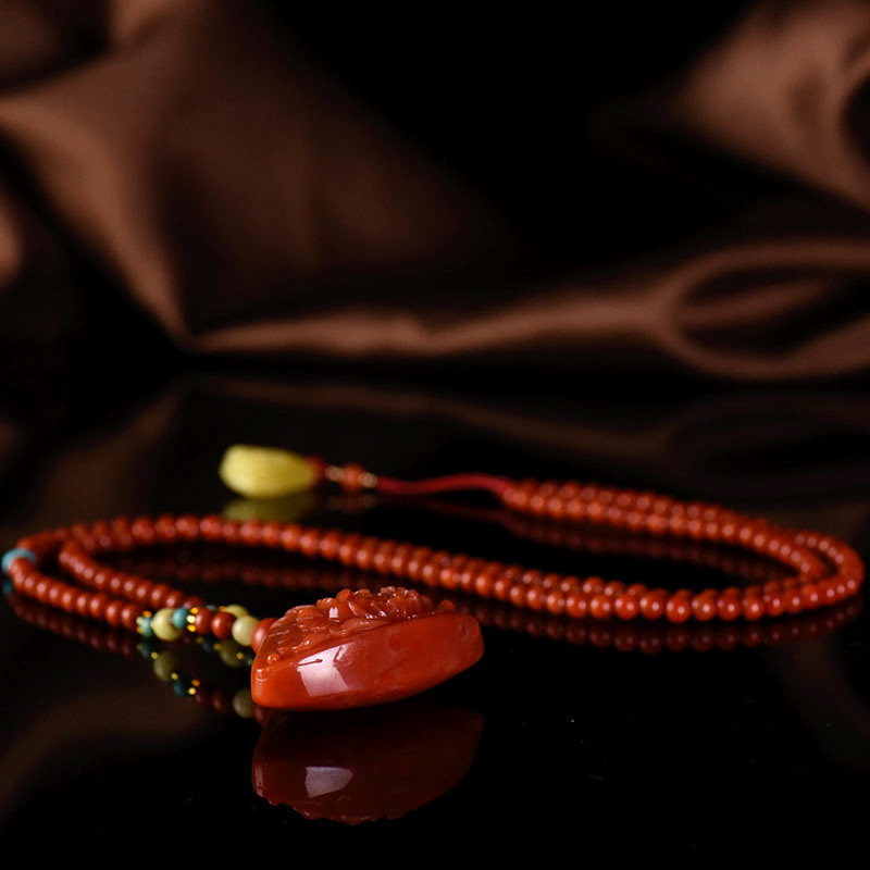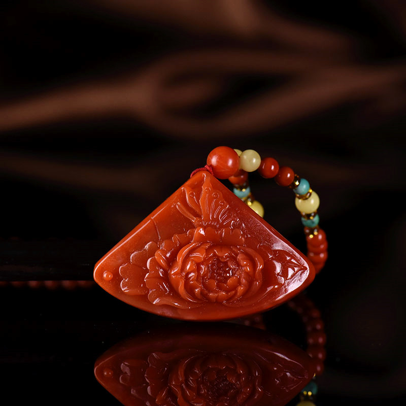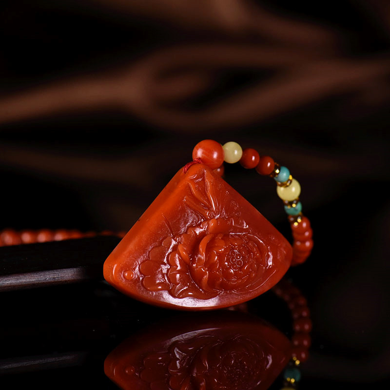 • 柿子红南红花开富贵吊坠