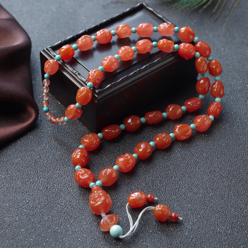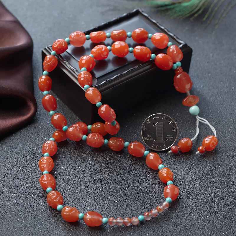 • [名  称] 樱桃红南红佛头珠毛衣链