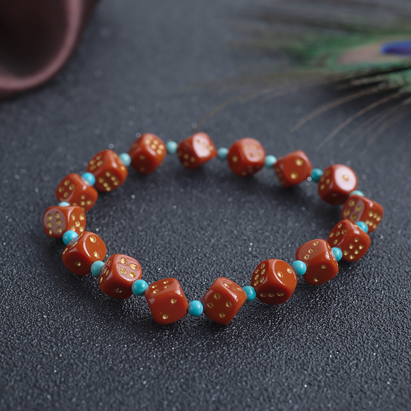 • 柿子红南红骰子单圈手串