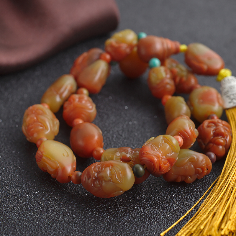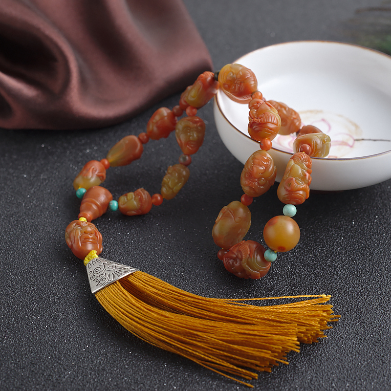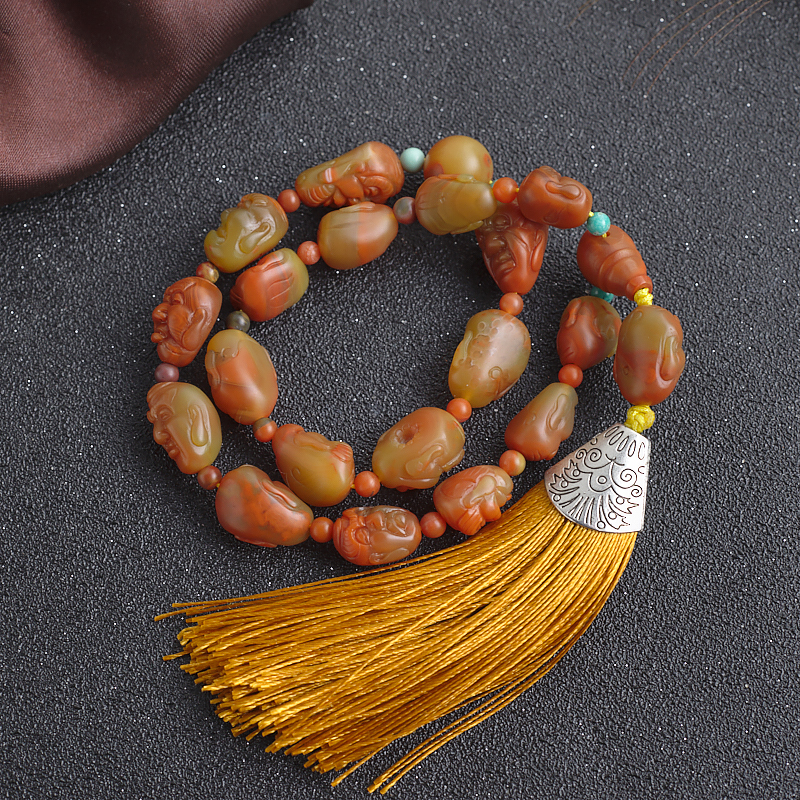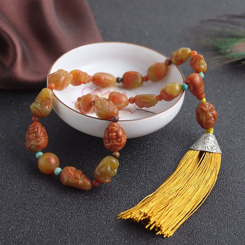 • 黄皮包浆料南红十八罗汉手持