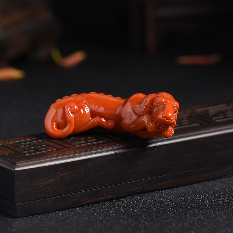 • 川料柿子红南红狗吊坠 - 红掌柜