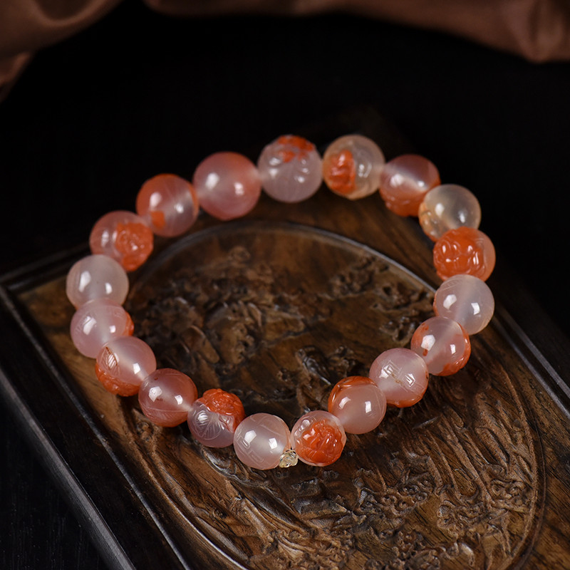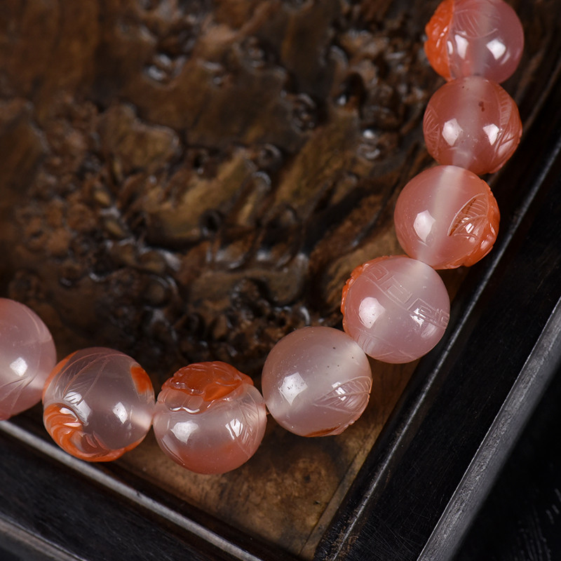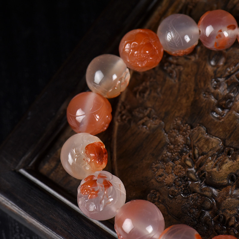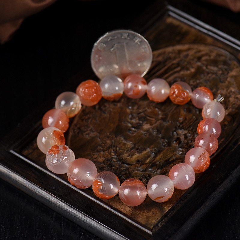 • [名  称] 俏色冰飘南红牡丹塔链单圈手串