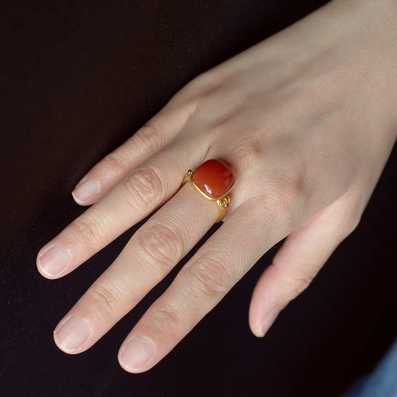 • 18K朱砂红南红方形戒指