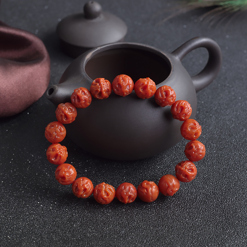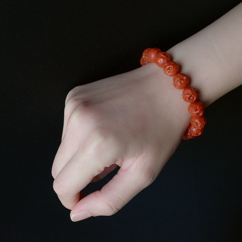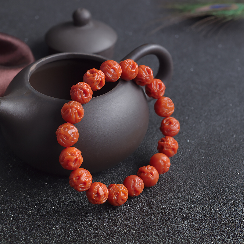 • 柿子红南红骷髅头单圈手串