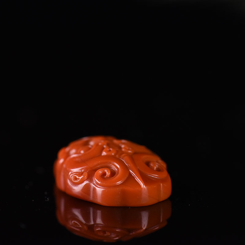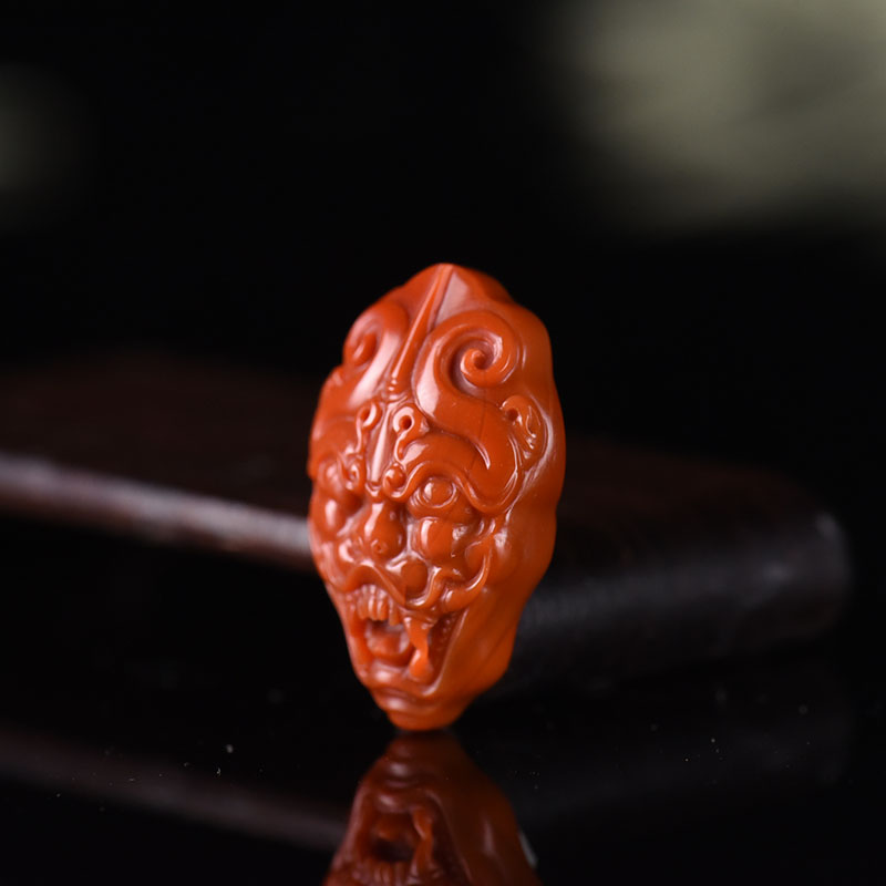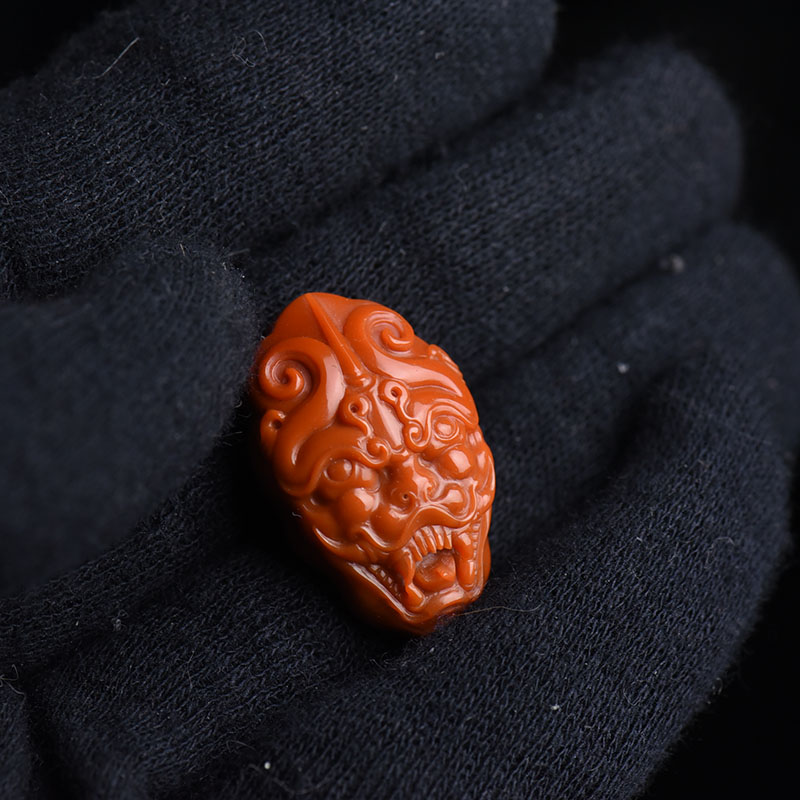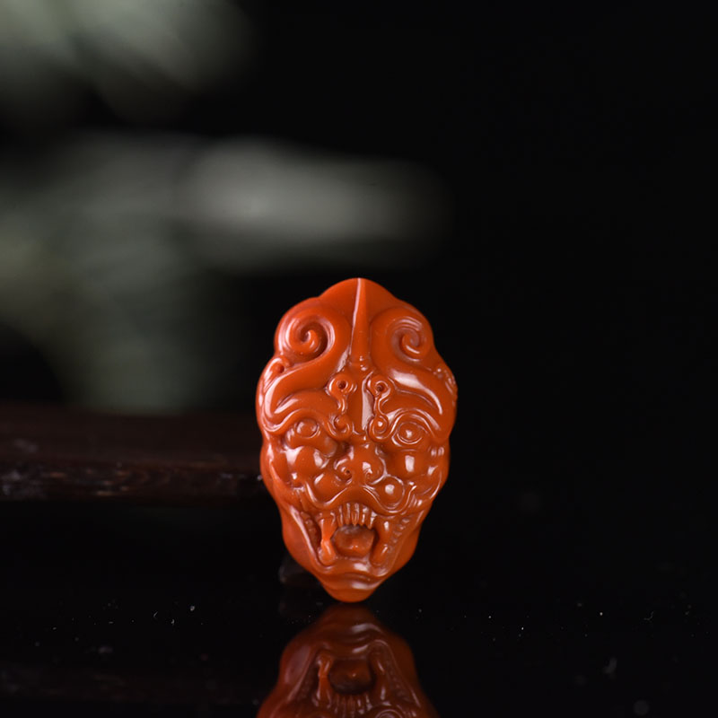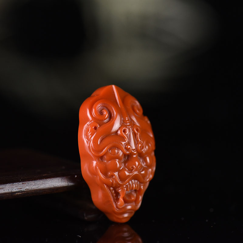 • 柿子红南红兽面吊坠