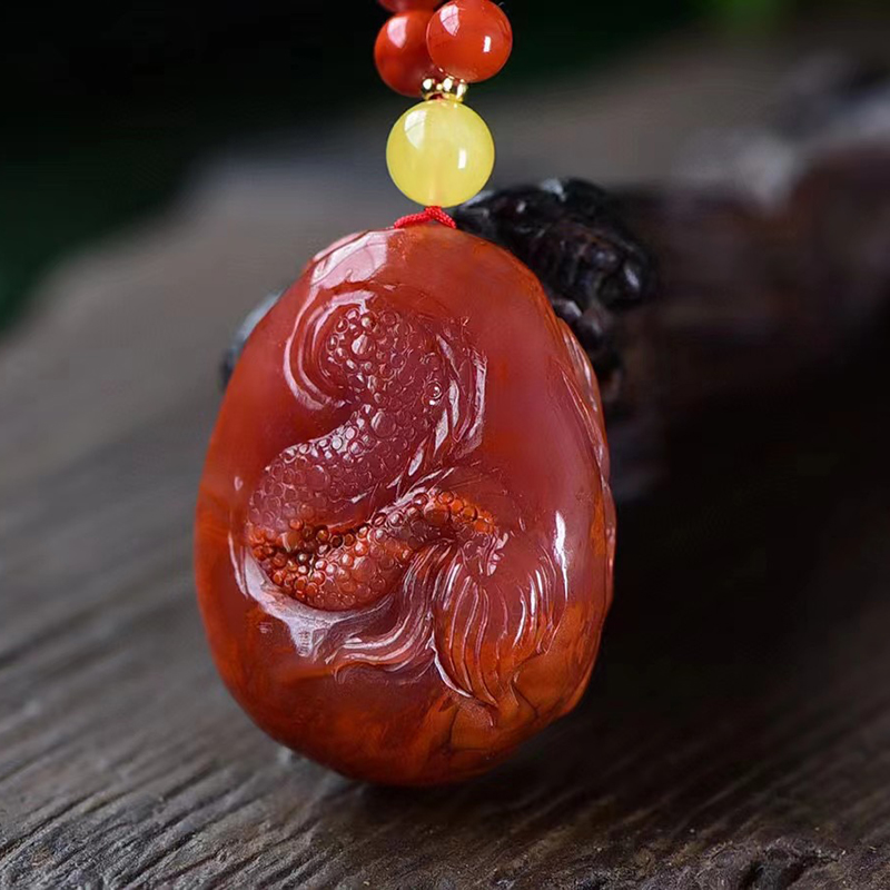 • 柿子红南红龙腾四海吊坠