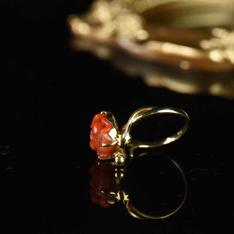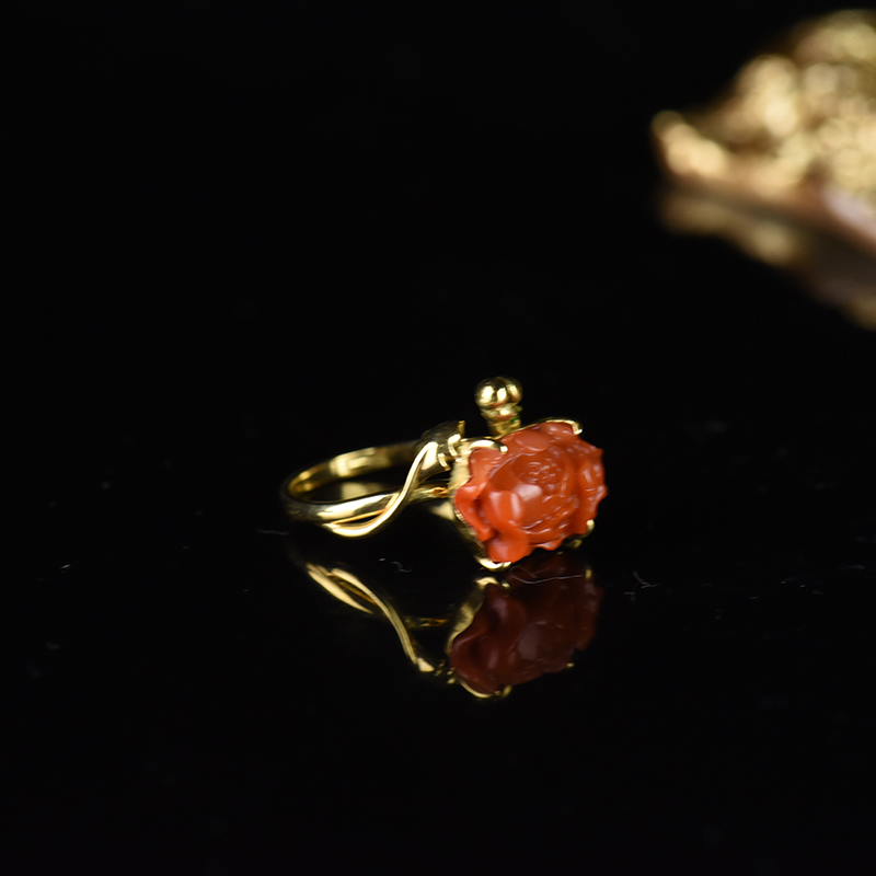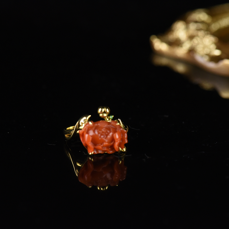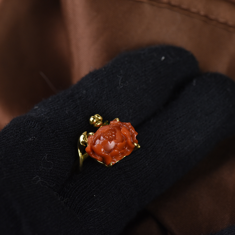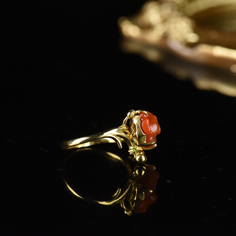 • [名  称] 18K柿子红南红牡丹戒指