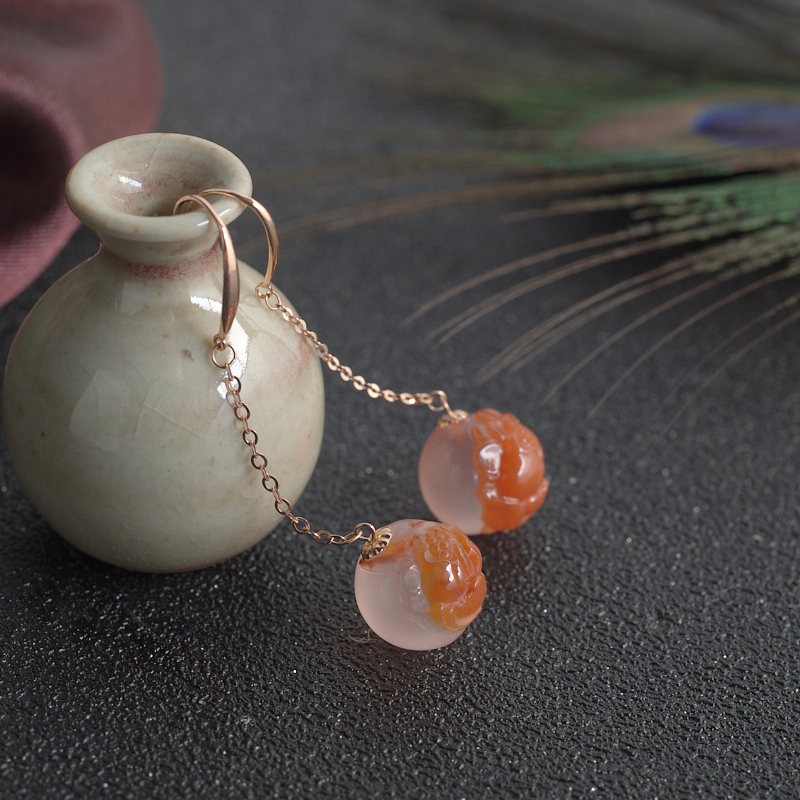 • [名  称] 18K冰飘料南红花开富贵耳环