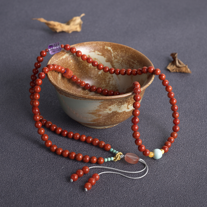 • 6mm柿子红南红108佛珠