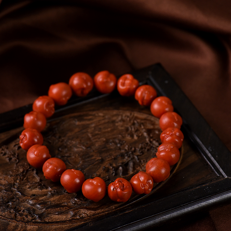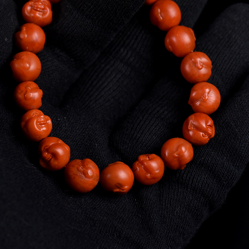 • [名  称] 柿子红南红弥勒佛单圈手串