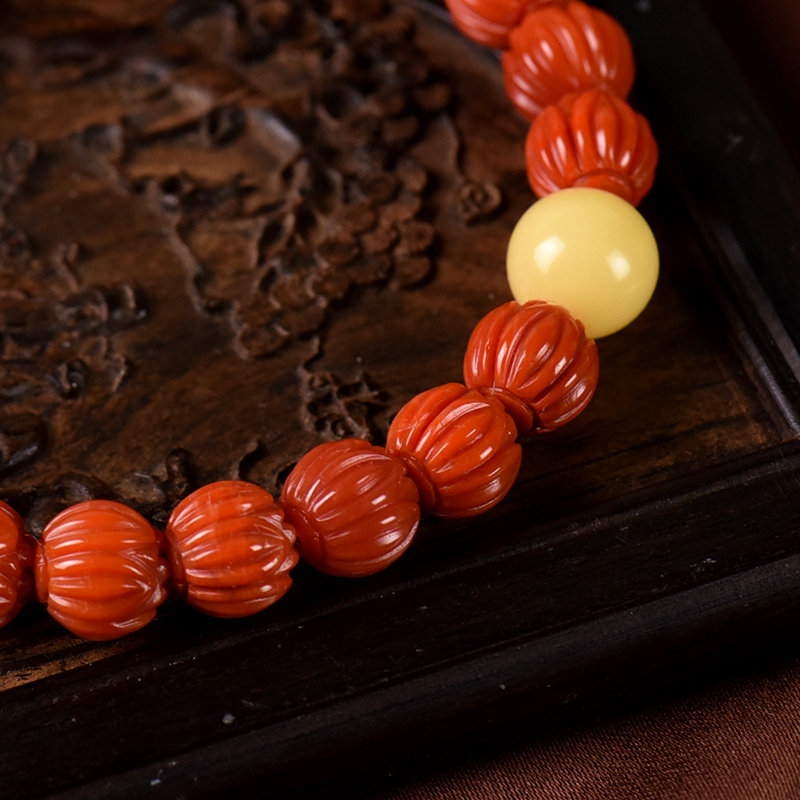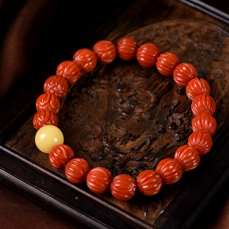 • [名  称] 9mm柿子红南红莲花珠单圈手串