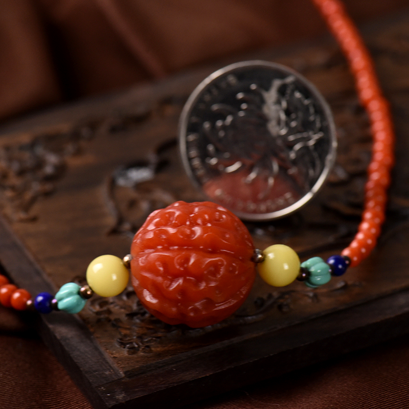 • [名  称] 18.5mm柿子红南红金刚珠项链