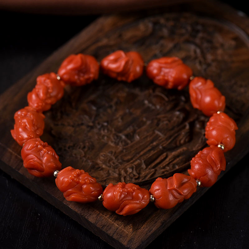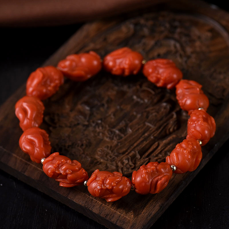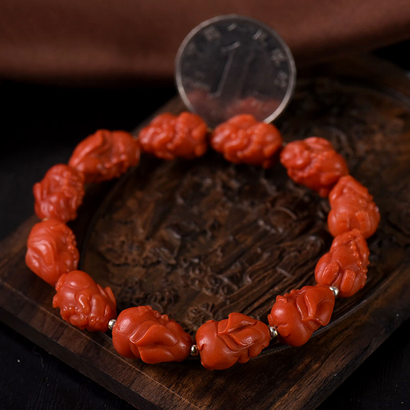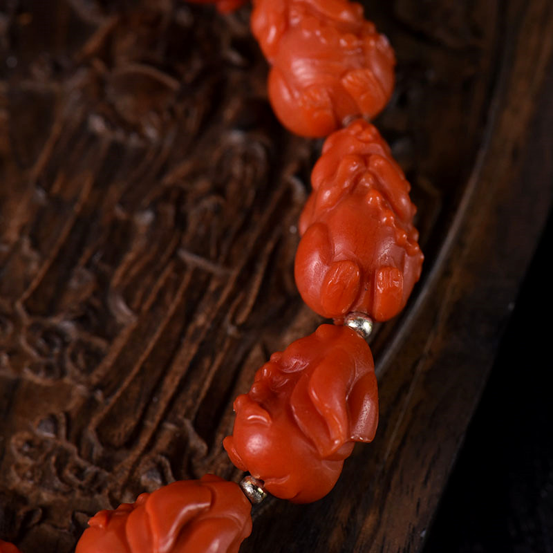 • [名  称] 柿子红南红垂耳兔单圈手串