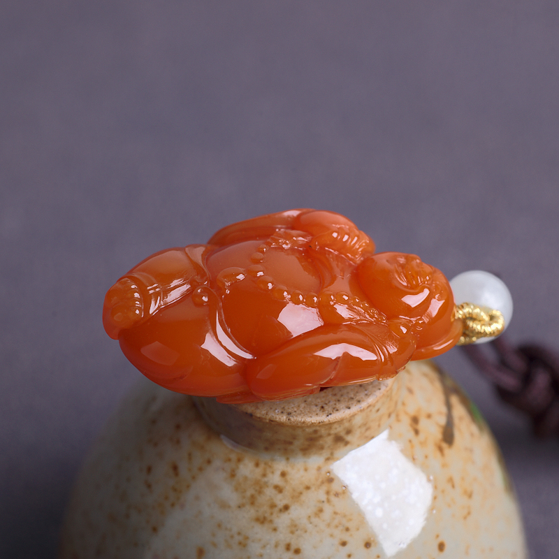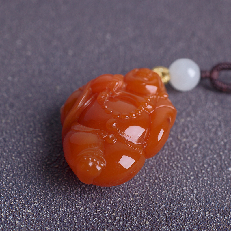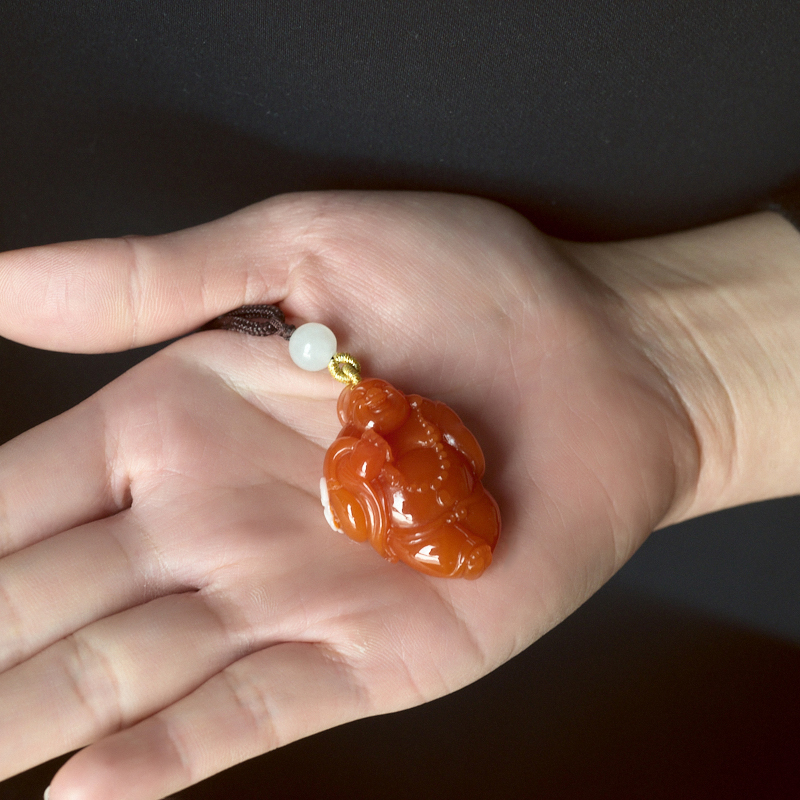 • 樱桃红南红弥勒佛吊坠