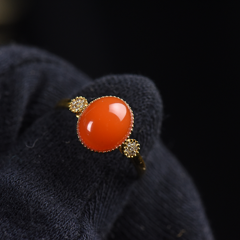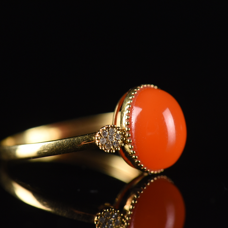 • 18K樱桃红南红戒指