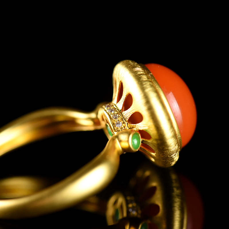 [工艺水平] 红掌柜珠宝聘请经验丰富的老工艺师傅,纯手工精心雕刻,根据每件作品的特点进行抛光工艺,还原瑰宝最真实的魅力。
