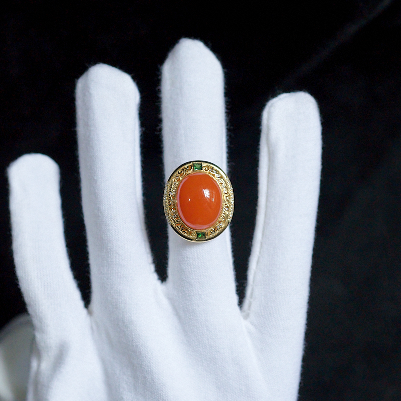 [工艺水平] 红掌柜珠宝聘请经验丰富的老工艺师傅,纯手工精心雕刻,根据每件作品的特点进行抛光工艺,还原瑰宝最真实的魅力。