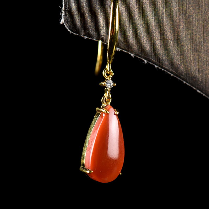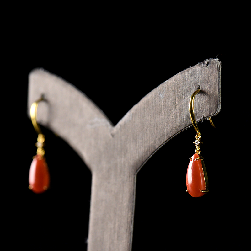 • 18K柿子红南红耳坠