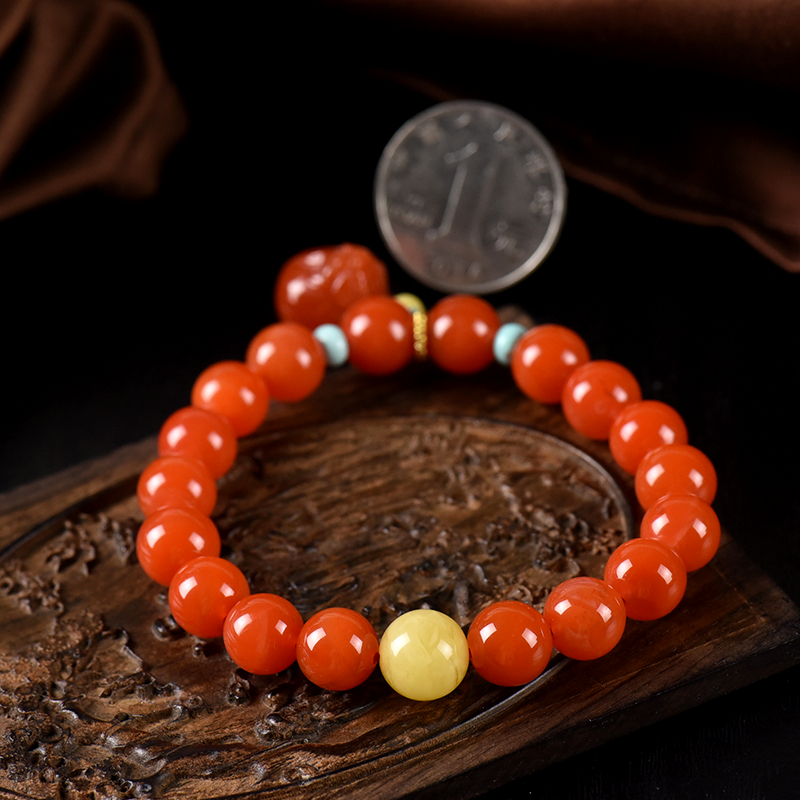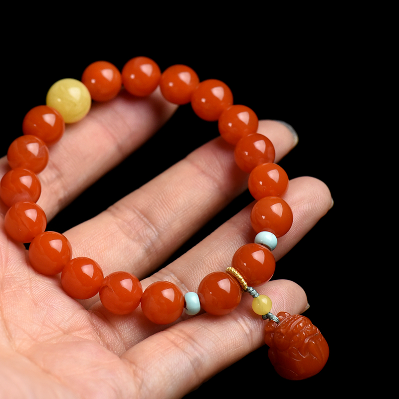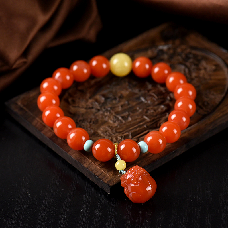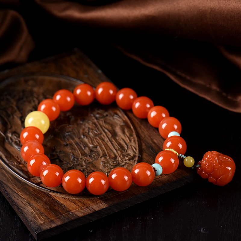 • 9.5mm樱桃红南红貔貅单圈手串