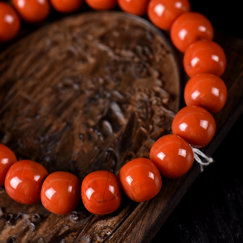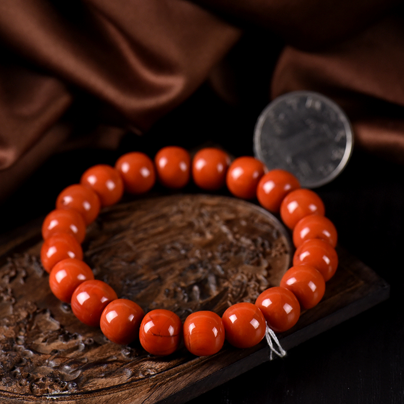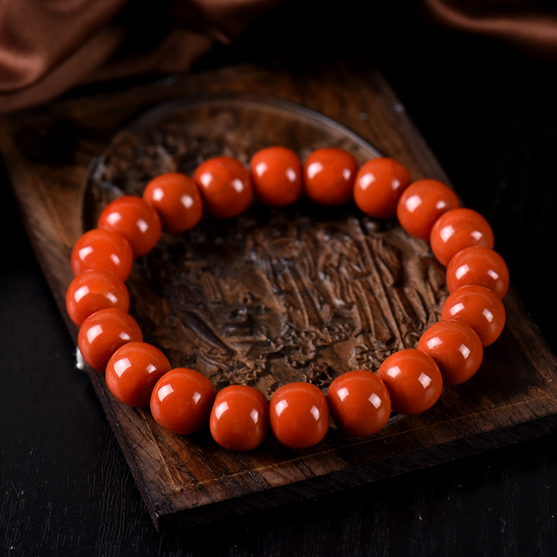 • 柿子红南红老形珠单圈手串