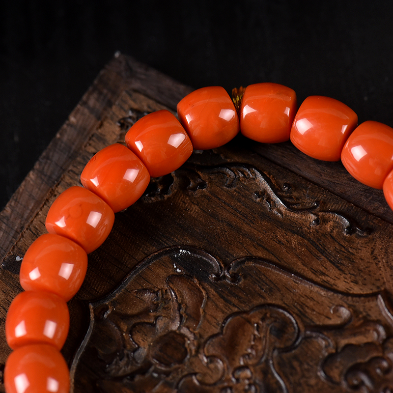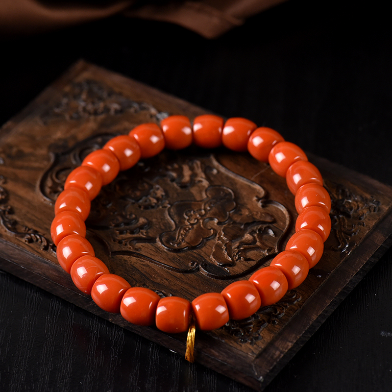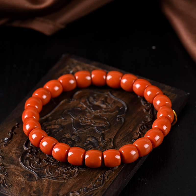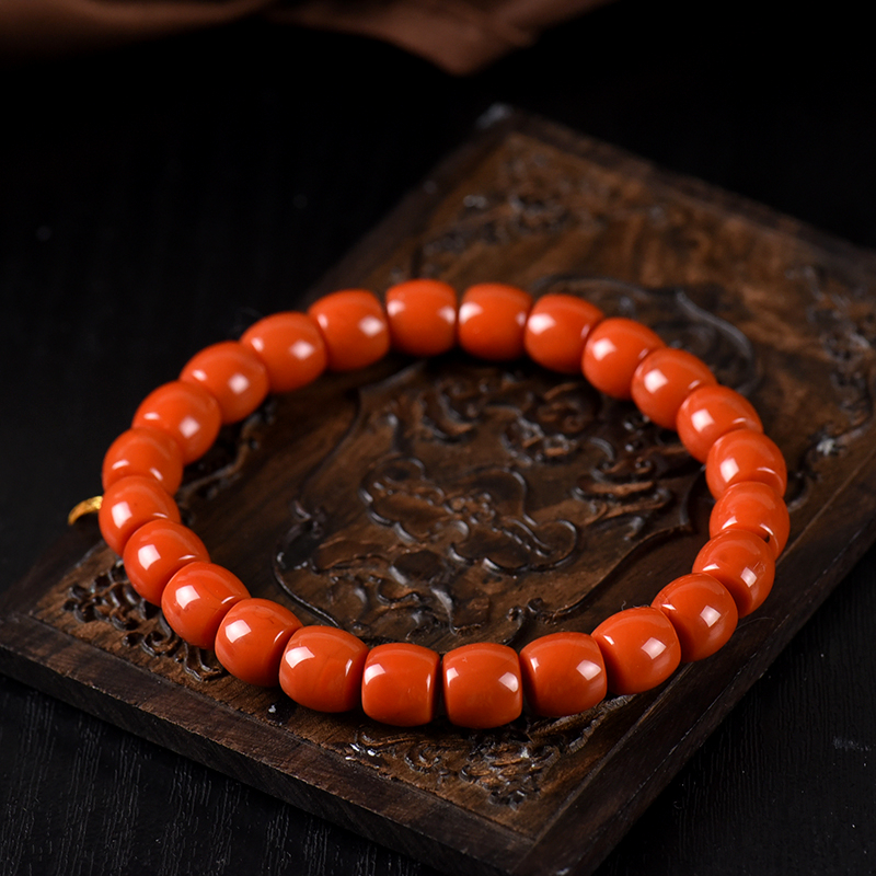 • [名  称] 柿子红南红直切老形珠单圈手串