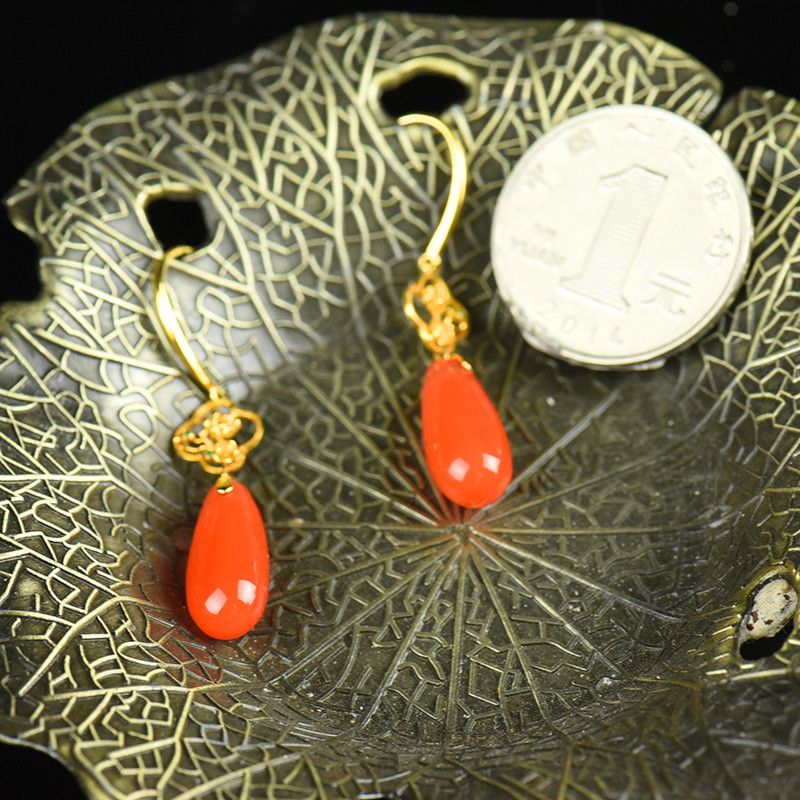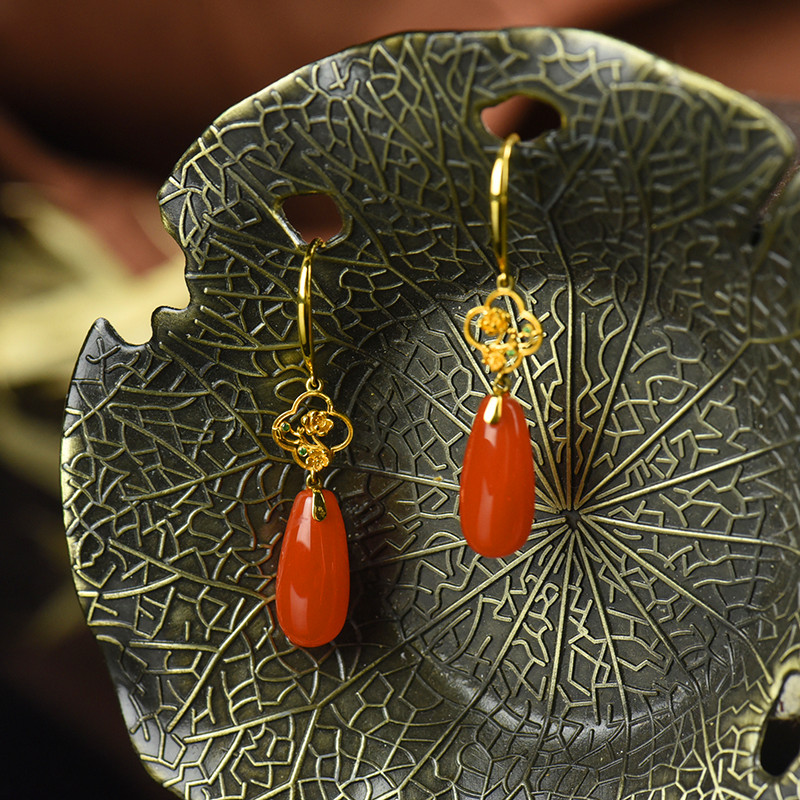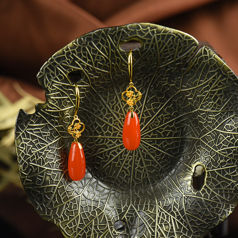 • 18K樱桃红南红耳坠