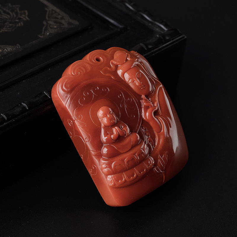 • 川料天然观音童子南红吊坠-红掌柜